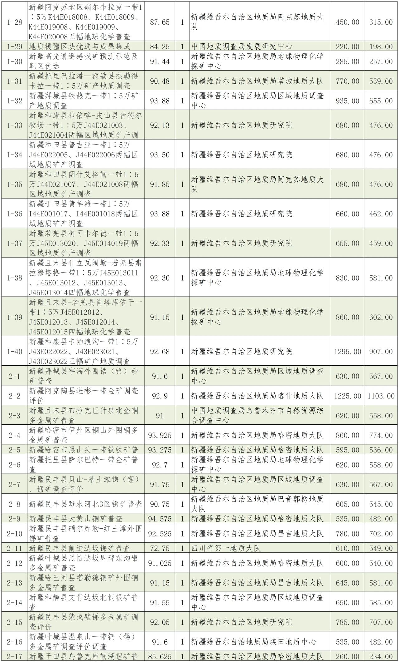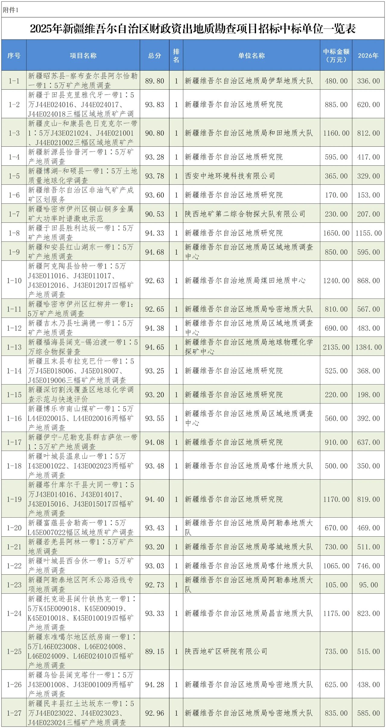 1.2026年新疆維吾爾自治區(qū)財政出資地質勘查項目招標中標單位一覽表