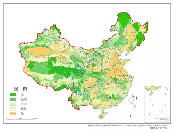 中國東部地區(qū)、及西部荒漠地區(qū)生態(tài)重要性較低,西部高原及未開發(fā)地帶,東北地區(qū)森林資源豐富,生態(tài)重要性較高。中國生態(tài)環(huán)境的基本狀況是:總體在惡化,局部在改善,治理能力遠遠趕不上破壞速度,生態(tài)赤字逐漸擴大。