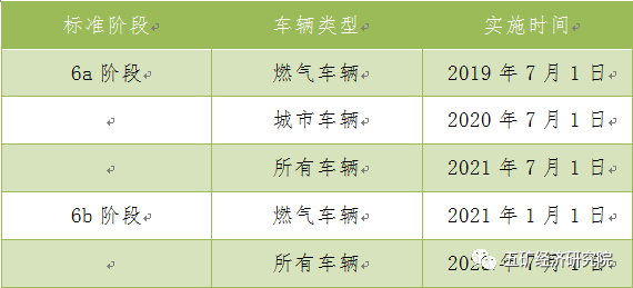 表2 國六排放標(biāo)準全國實施時間