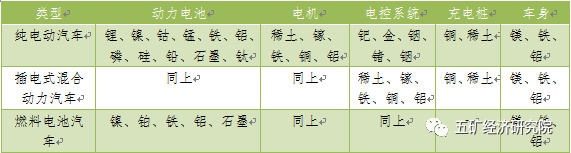表3新能源汽車與礦產(chǎn)資源