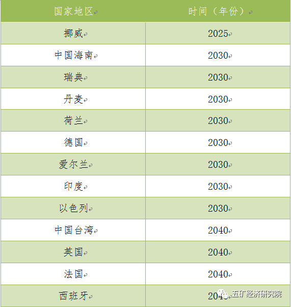 表1 各國地區(qū)禁售燃油車時間表