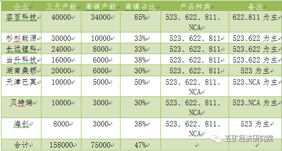 表5 中國三元材料企業(yè)高鎳產(chǎn)能布局情況