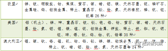 表4 西方國家關(guān)鍵礦產(chǎn)名單